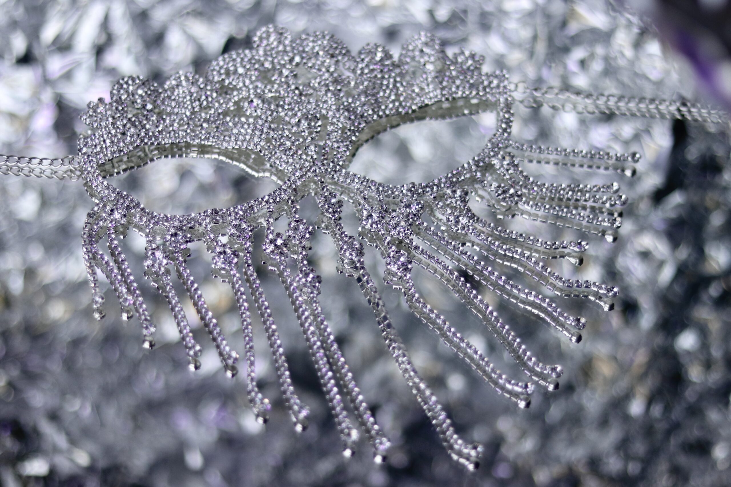 Crystal coverage that’s intentional, removable, devastating. Each strand placed where regret would normally live. The mask that makes bad decisions look strategic.